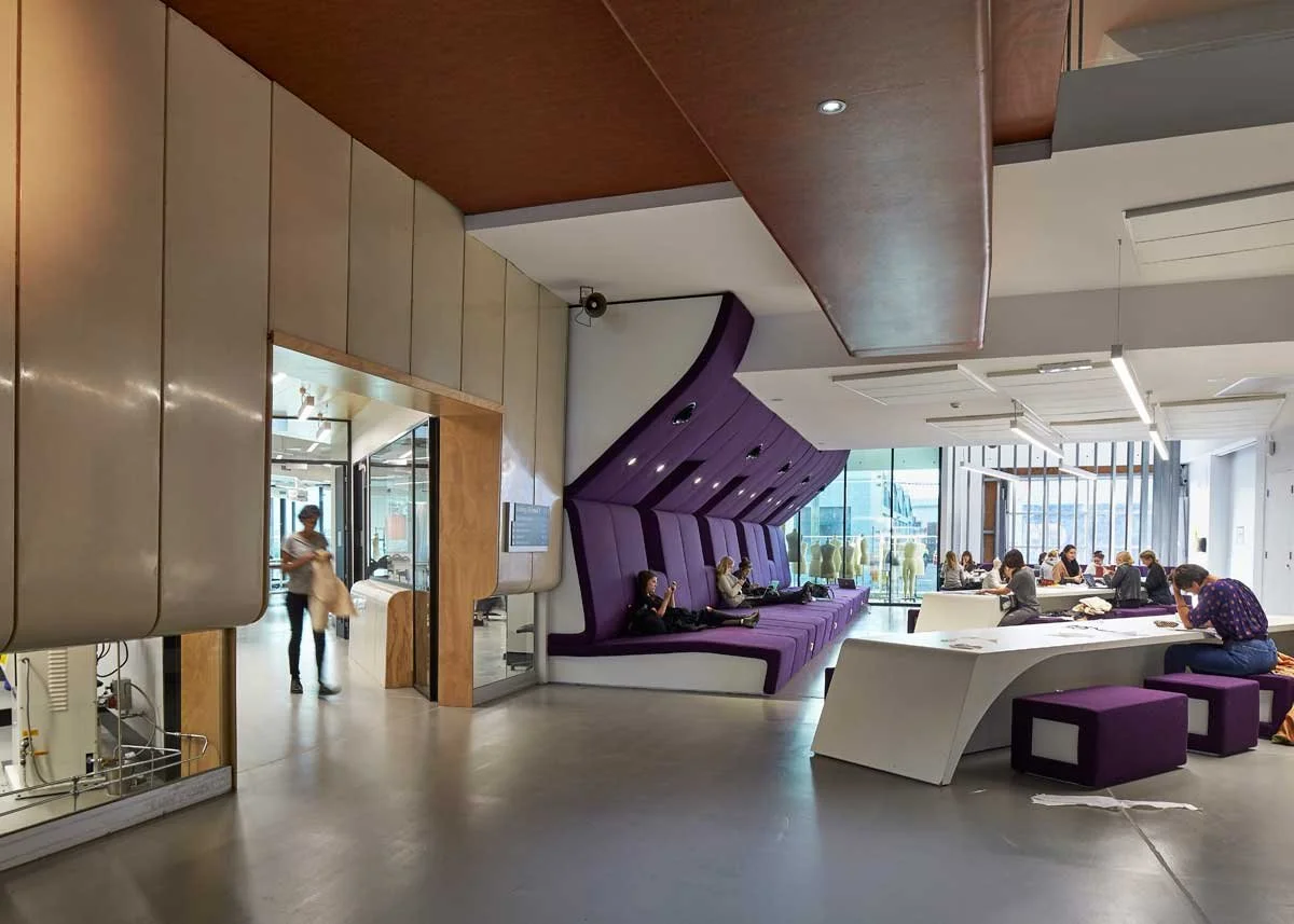 The new two-level learning centre for undergraduate students includes studios, teaching spaces, machinery rooms, a lecture theatre, student break-out and study spaces and greater access for students with disabilities.