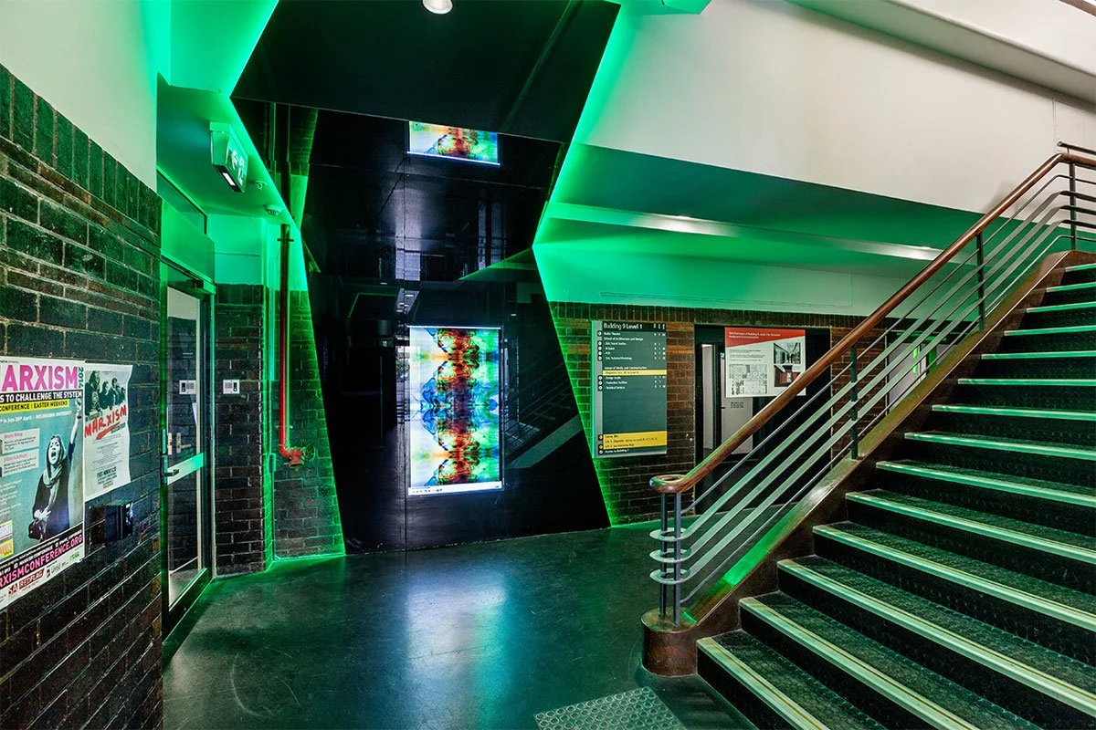 Housed in RMIT’s Building 9, the project was about creating a new home for the School of Media and Communication – a school that was previously spread over ten buildings locations within RMIT’s Melbourne Campus.