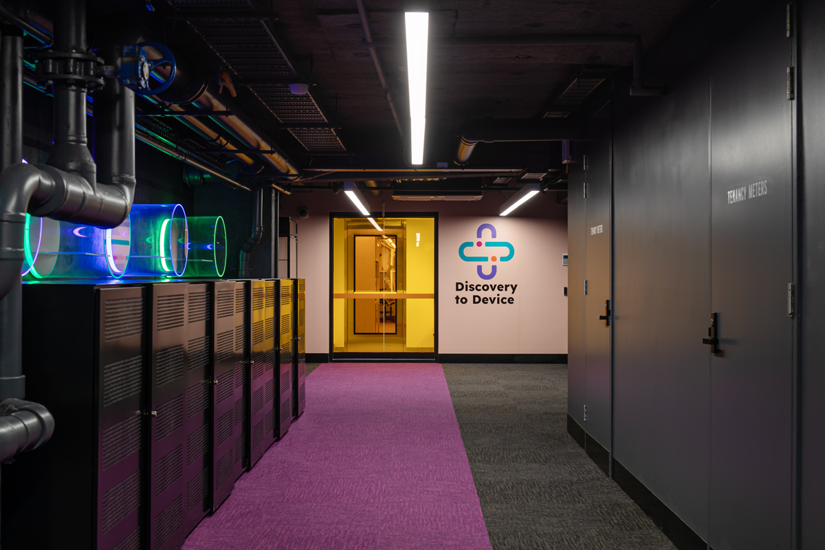 New Med Tech facility; ISO accredited clean room facility with capability to support prototyping and small volume manufacturing of wearables, nearables, and flexible medical devices for applications in preventive and personalised healthcare.