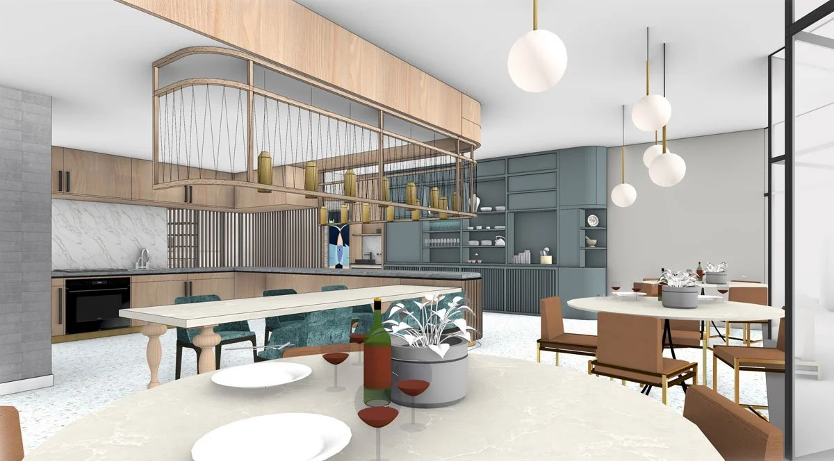 The design promotes and respects the diverse cultural backgrounds of this new community. Creating a space that is a home first meant incorporating the inclusion of a large kitchen — with an oversized kitchen bench — as a welcoming space where residents are encouraged to share traditional recipes and prepare meals with relatives and friends.